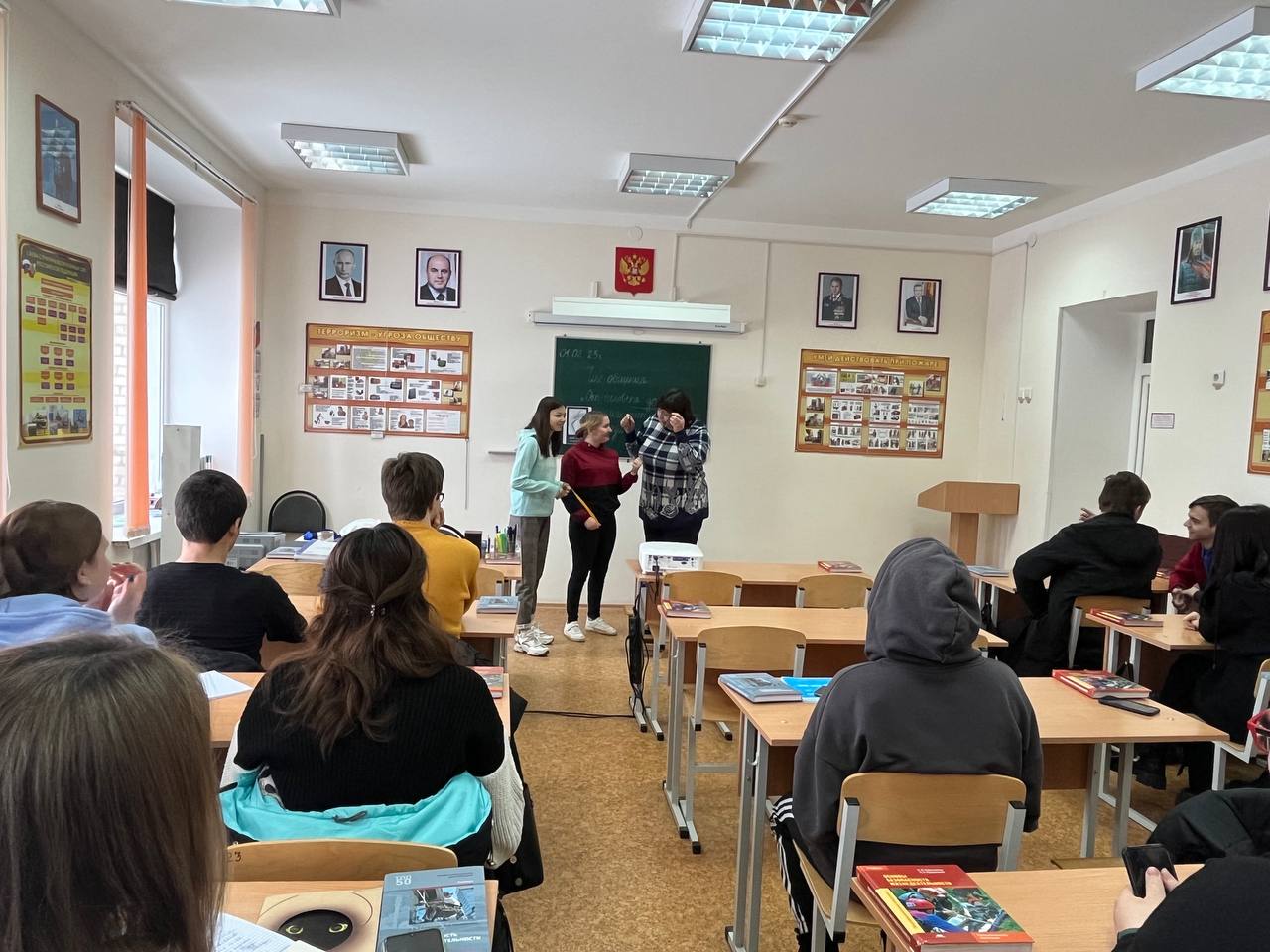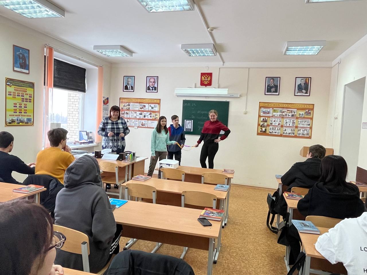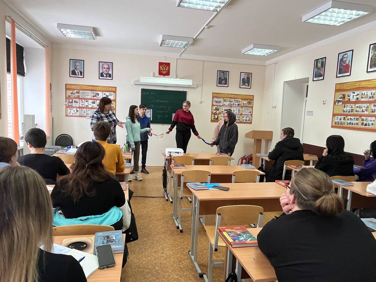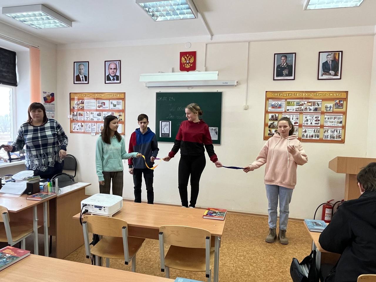 01.02.2023 г. с обучающимися группы № 76 по специальности «Товароведение и экспертиза качества потребительских товаров» и группы № 58 по специальности «Право и организация социального обеспечения» социальным педагогом Лютовой В.Н. был проведен час общения с элементами тренинга «От человека до марионетки один шаг». Мероприятие направлено на реализацию следующих задач: сформировать представление о влиянии употребления вредных веществ на возможность продолжения образования, на получение интересной и хорошо оплачиваемой работы, на здоровье, на будущее потомство; навыки по оказанию сопротивление влияния ровесников и понимать, почему им необходимо сказать «нет»; умение критически оценивать людей, которые их окружают и которым они хотят подражать; понимать важность их собственного ответственного поведения перед обществом; развивать позитивное чувство собственного достоинства. В процессе общения Валентина Николаевна объяснила, насколько важен процесс социализации для ребят в их новом статусе «студента» (для обучающихся 1 курса), как важен потенциал каждого для совместных коллективных дел в группе и техникуме. Центром мероприятия стало упражнение «Гора жизни». На каждом этапе Валентина Николаевна комментировала этапы упражнения. Человек (Вероника Сальникова) стоит на горе. Эта гора - символическое изображение его жизни. Девушка не падает с этой горы, она стоит на ней устойчиво. От падения вниз ее удерживает множество жизненных связей: семья (Диана Абуканова), влюбленность (Варвара Шевченко), друзья (Никита Бояр), педагоги (Диана Алейникова). Вероника стоит на той же горе, но один из держащих ее канатов (влюбленность) рвется. То есть у человека возникают какие-либо проблемы, все остальные связи поддерживают человека, дают почувствовать себя увереннее. Эти связи выстраиваются годами, и они не могут возникнуть у личности, находящейся в вакууме, вне общества. Если «связи» рвутся, возникает риск обращения к веществам, вызывающим зависимость. Роль зависимости в данном тренинге изобразила социальный педагог. Она выше стоящего на горе, и протягивает конец веревки «стоящему на горе». Итак, сначала вещества попадают в «поле зрения» человека; здесь может сработать принцип «если вокруг меня люди делают это, почему бы и мне не попробовать?». Человек первый раз берется за «висящий перед ним канат». Пока это никак не сказывается на всех «жизненных связях». Но постепенно, когда человек начинает потреблять запрещенные вещества все чаще и чаще, он хватается за «второй канат»- возникает зависимость. Человек, стоящий на горе, держится только за висящие канаты. «Связи», с помощью которых он держался на этой горе до этого, оборваны. Человек уже не стоит на горе. Нити подняли его руки вверх, он становится похожим на марионетку. В ходе дискуссии ребята пришли к выводу, что любая зависимость превращает человека в марионетку, полностью руководит его действиями. Он «остается без денег», «теряет работу», «бросает учебу», «болеет», «отрывается от людей», не думает о других» - это обрыв связей.